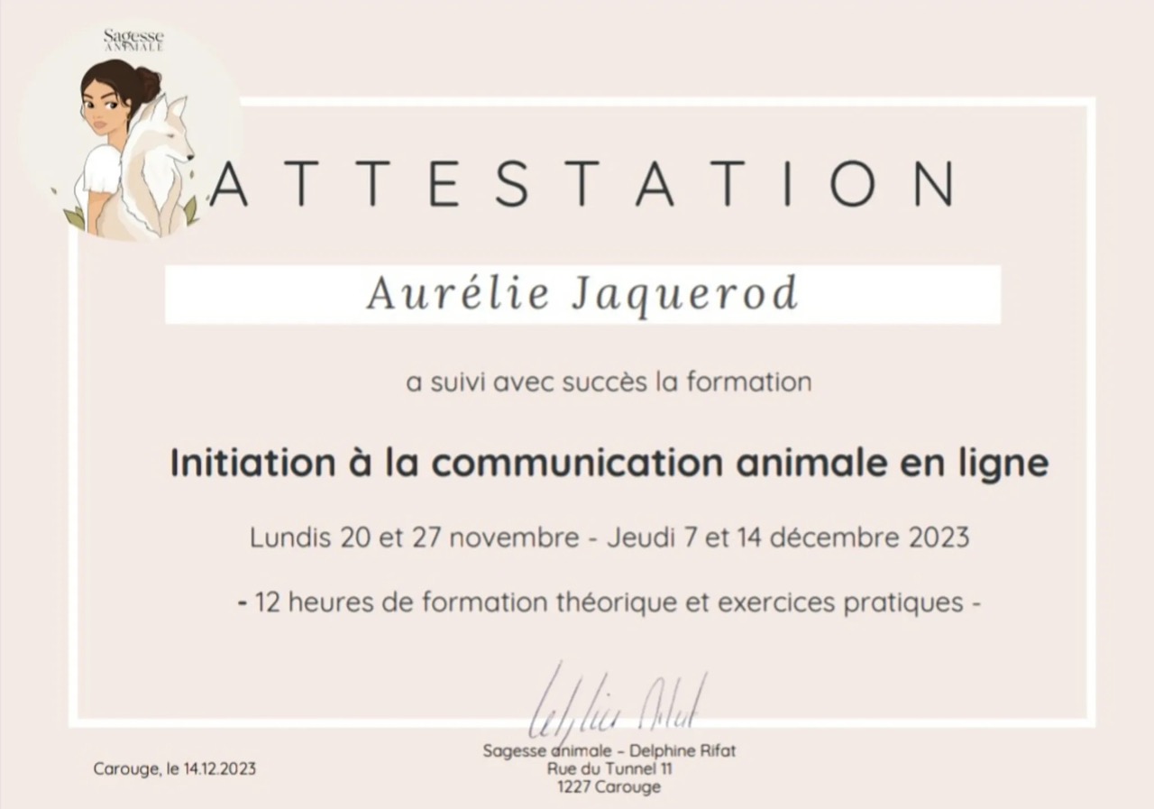 « Bien plus qu’un simple échange, la communication animale est un chemin d’épanouissement partagé. Elle offre à l’animal la douceur d’être accueilli dans sa plus profonde vérité, et au gardien le privilège de grandir à ses côtés en parfaite harmonie. »